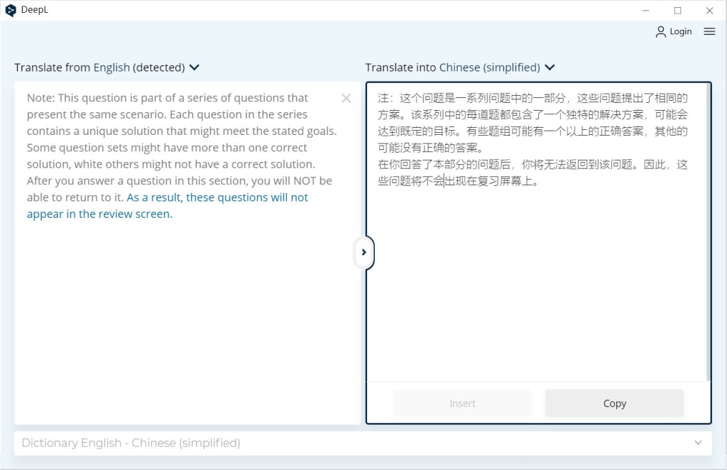 前幾天在網路爬文時,找到了一個好用的線上翻譯,翻譯出來的句子看起來並不死板,還算通順。同樣的句子,在Google翻譯可能看不通順,但DeepL中看起來卻比較順眼。唯一的缺點是只支援簡體中文,不過現在兩岸交流很頻繁,說實在的簡體對我們來說應該不困難才對。推薦給大家使用…