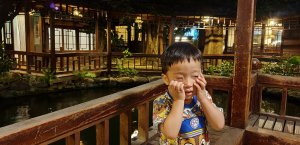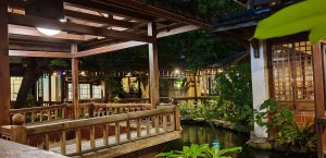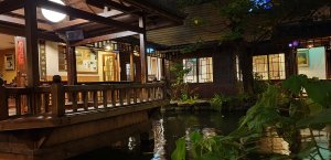 古色古香,席榻而坐,泡茶聊是非的好地方,小朋友在木棧回廊上,盯著烏龜錦鯉猛瞧。外頭車陣喧囂也不知道是隔音太好,還是心遠地自偏,竟是一點感覺都木有啊……
