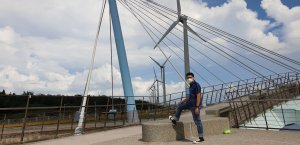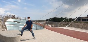 藍與白在微晃交錯,人也沈浸和煦微風。