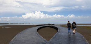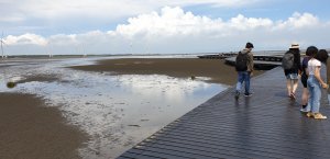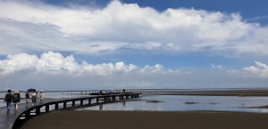 蜿蜒木棧道,兩旁密密麻麻的招潮蟹,一坨坨的,然後地主隊的小朋友就崩潰了。只得由地主隊老爸帶我倆繼續勇往直前。