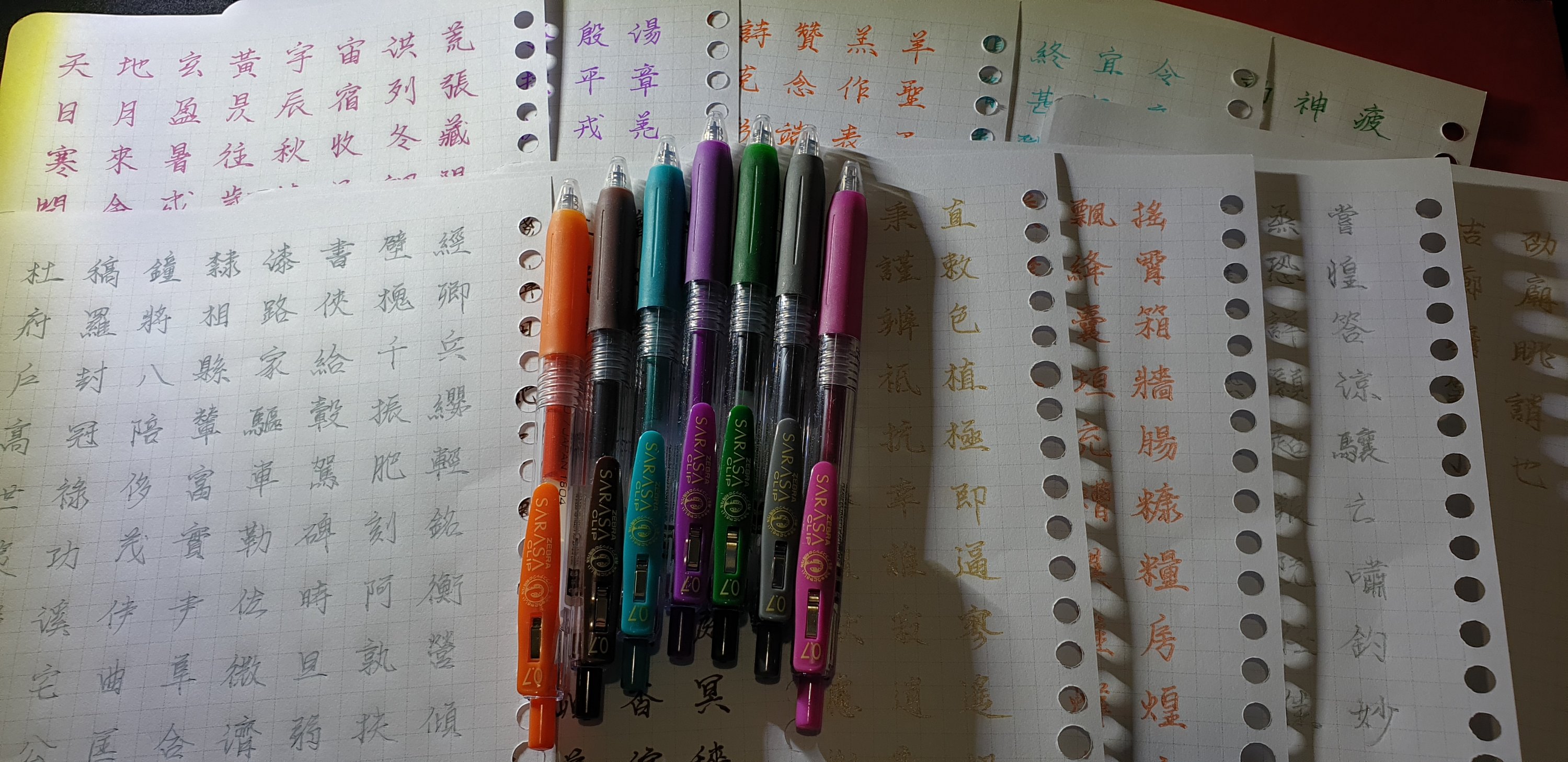 以千字文練字好處是連貫,不留空格,不浪費紙,各種部首旁字都涵括在內。