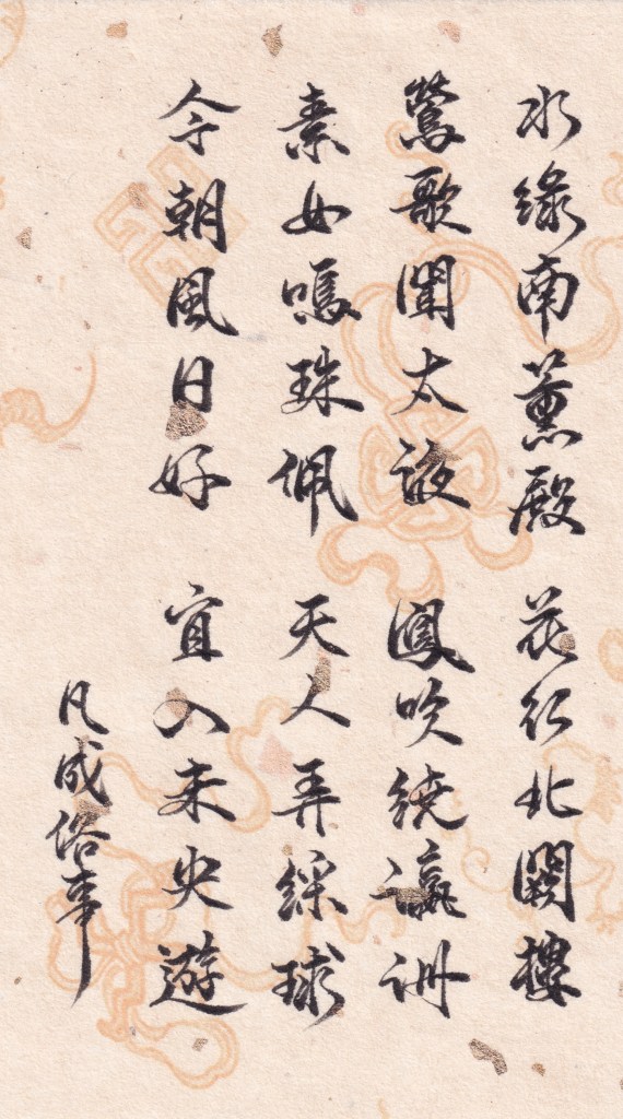 風日,猶風光。未央,漢代有「長樂」、「未央」兩宮殿,長樂未央四字就成了漢唐時代用來代表美好的吉祥語。