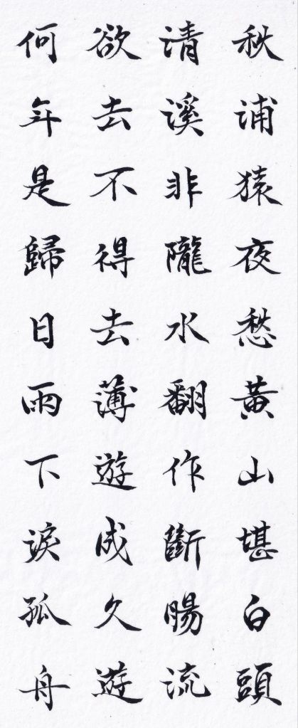 夜裡的秋浦,有如秋夜蕭瑟淒涼,猿聲哀啼陣陣,眼前黃山景色便足以讓人愁白了頭。身旁潺潺清溪,雖不是隴水,可水聲幽咽,足以讓人心肝斷絕。