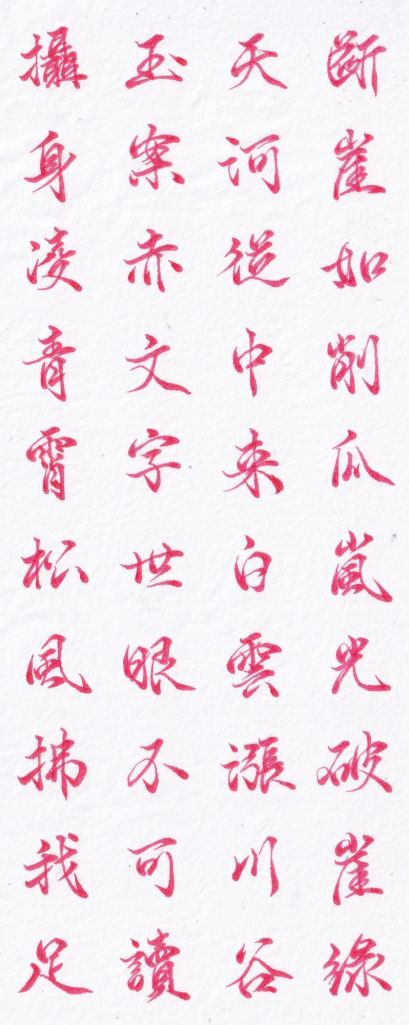 山崖頂平整如玉製的桌案一般平滑,上面的紅色紋理就有如神祕文字一般,凡俗人根本難以理解。