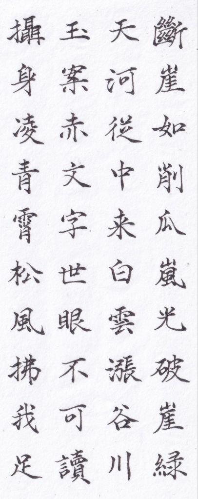 斷崖如削瓜,嵐光破崖綠。天河從中來,白雲漲川谷。